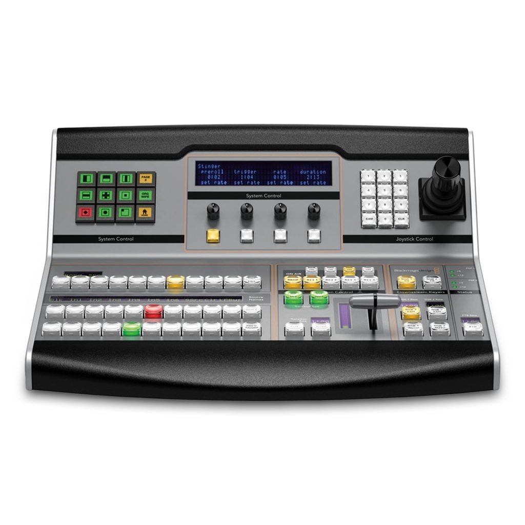 When you need more control of you ATEM switcher than the software control panel provides, the Blackmagic Design ATEM 1 M/E Broadcast Panel delivers 24/7 switching control in a robust yet compact hardware panel. This 1 M/E (mix effect) panel incorporates professional-grade buttons, knobs, and controls that would be at home in a broadcast control room. It features dedicated buttons for direct and shifted crosspoints, an on-air indicator, a fader, and 3-axis joystick.