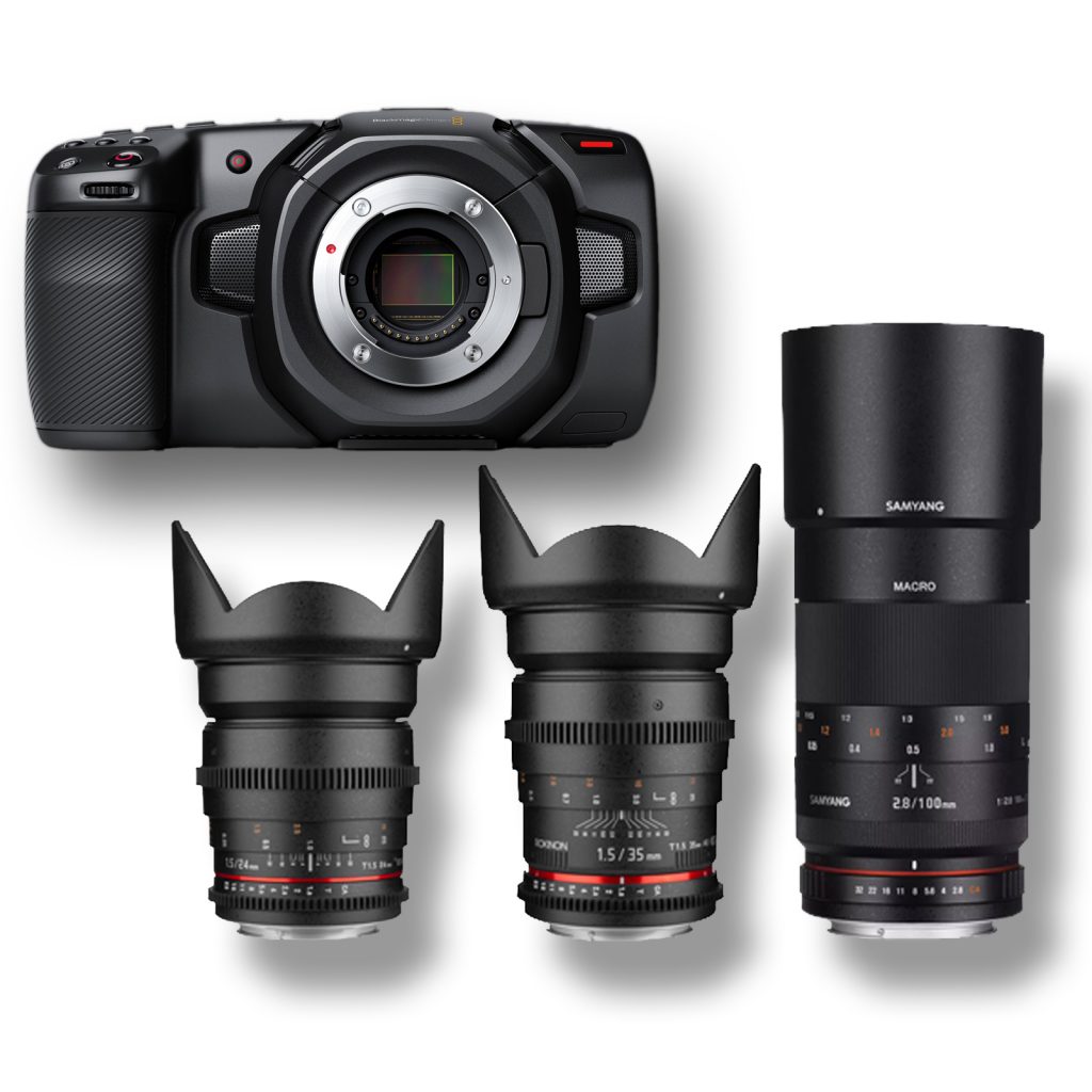 Digital Cinema Kit with Blackmagic Pocket Cinema 4K Camera, 3 Samyang Cine-Prime Lenses & Tripod – Available for Rent at Digital Azul.