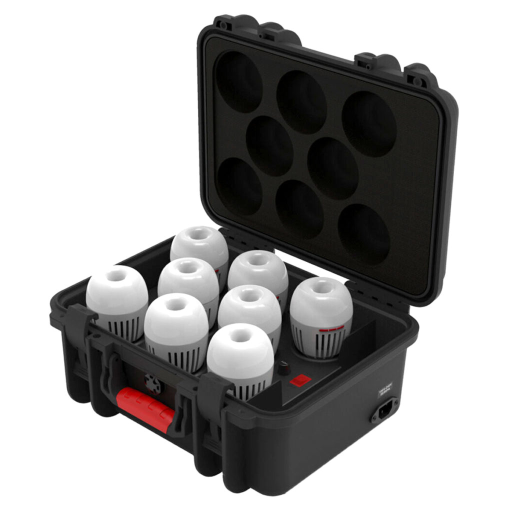 O Accent B7C RGBWW LED 8-Light Kit da Aputure é uma solução prática e robusta de iluminação para exteriores e interiores, fornecida numa mala de transporte resistente.