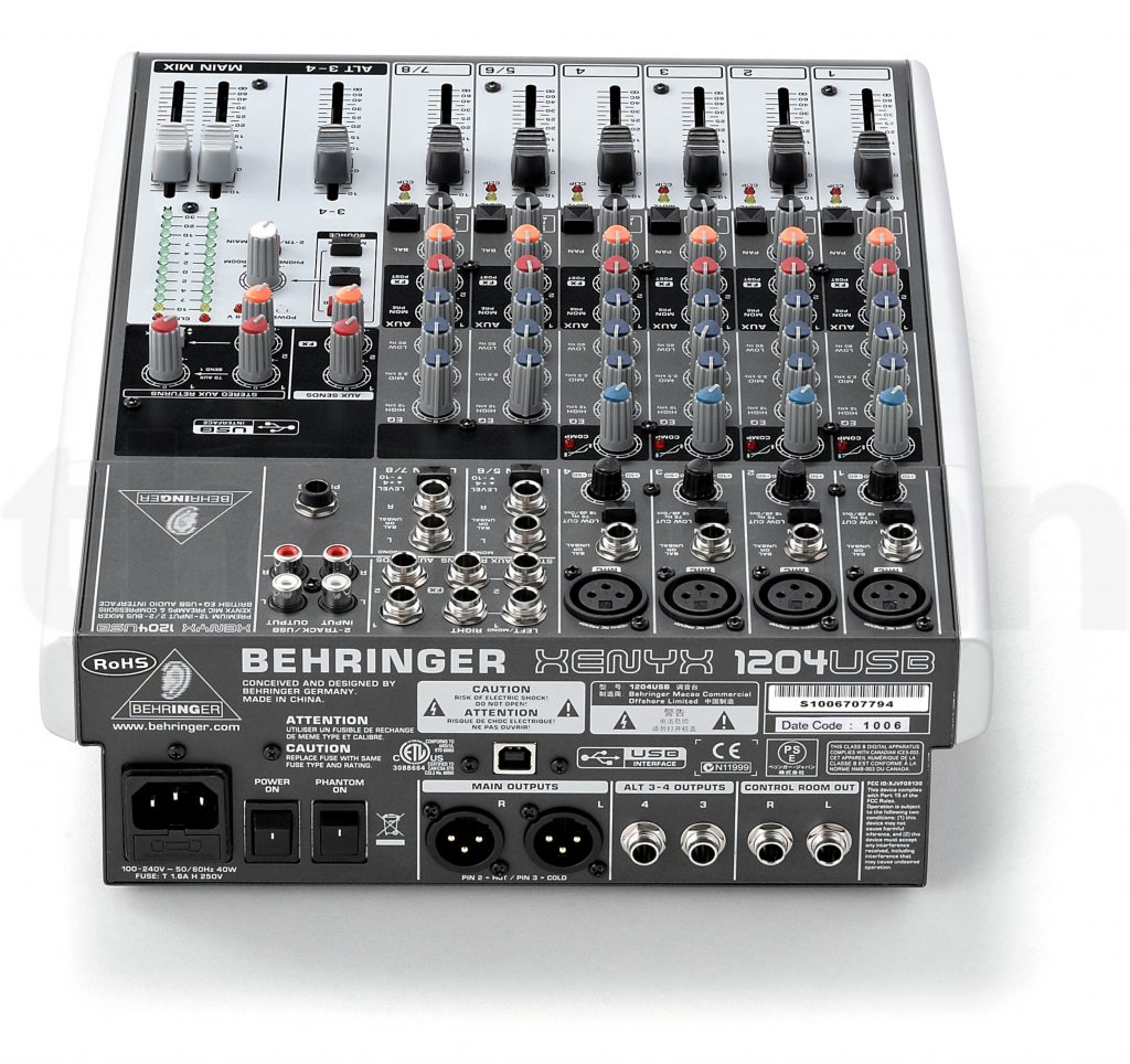 A XENYX 1204USB da Behringer é uma mesa de mistura áudio de 12 entradas, com interface áudio USB integrada para computador. Permite misturar e moldar o som de vários sinais áudio e direccionar o áudio para diversas saídas. Foi dada especial atenção à qualidade dos 4 pré-amplificadores de microfone, ao equalizador de 3 bandas de estilo “British” e aos 4 compressores de um só botão, fáceis de utilizar.